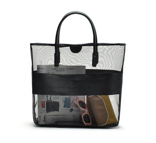 mesh handbag tote beach bag, clear black -