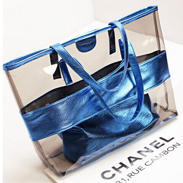 clear PVC handbag tote bag with cosmetics bags and toiletries case bag -